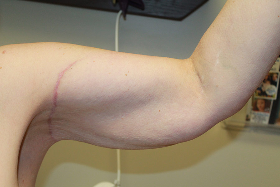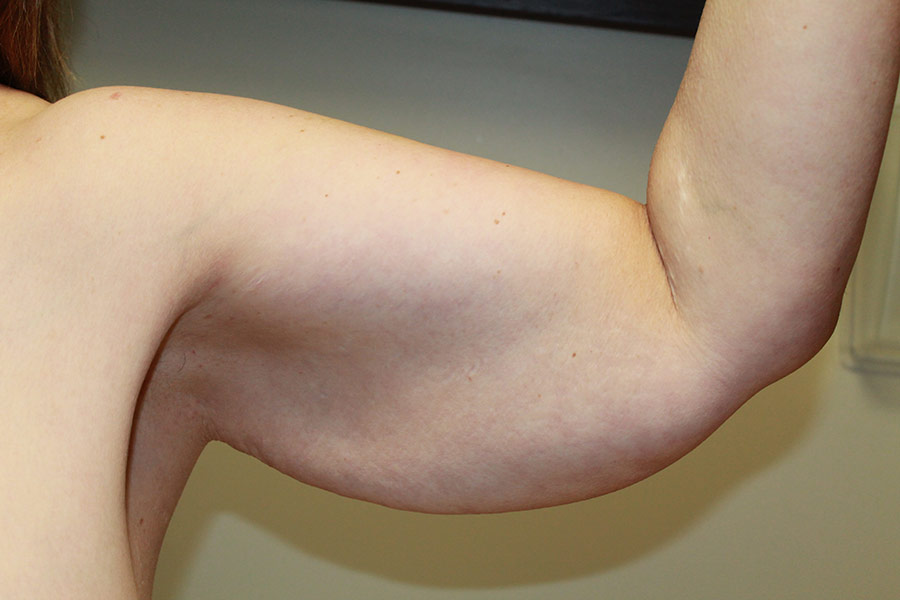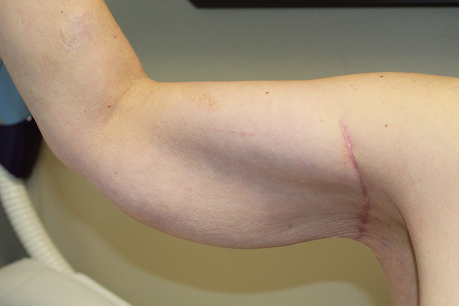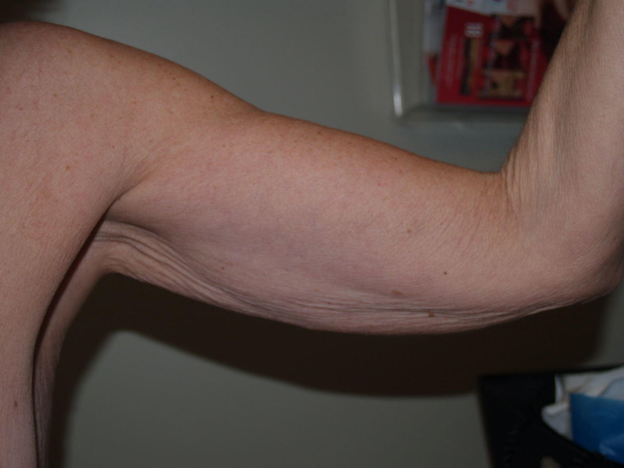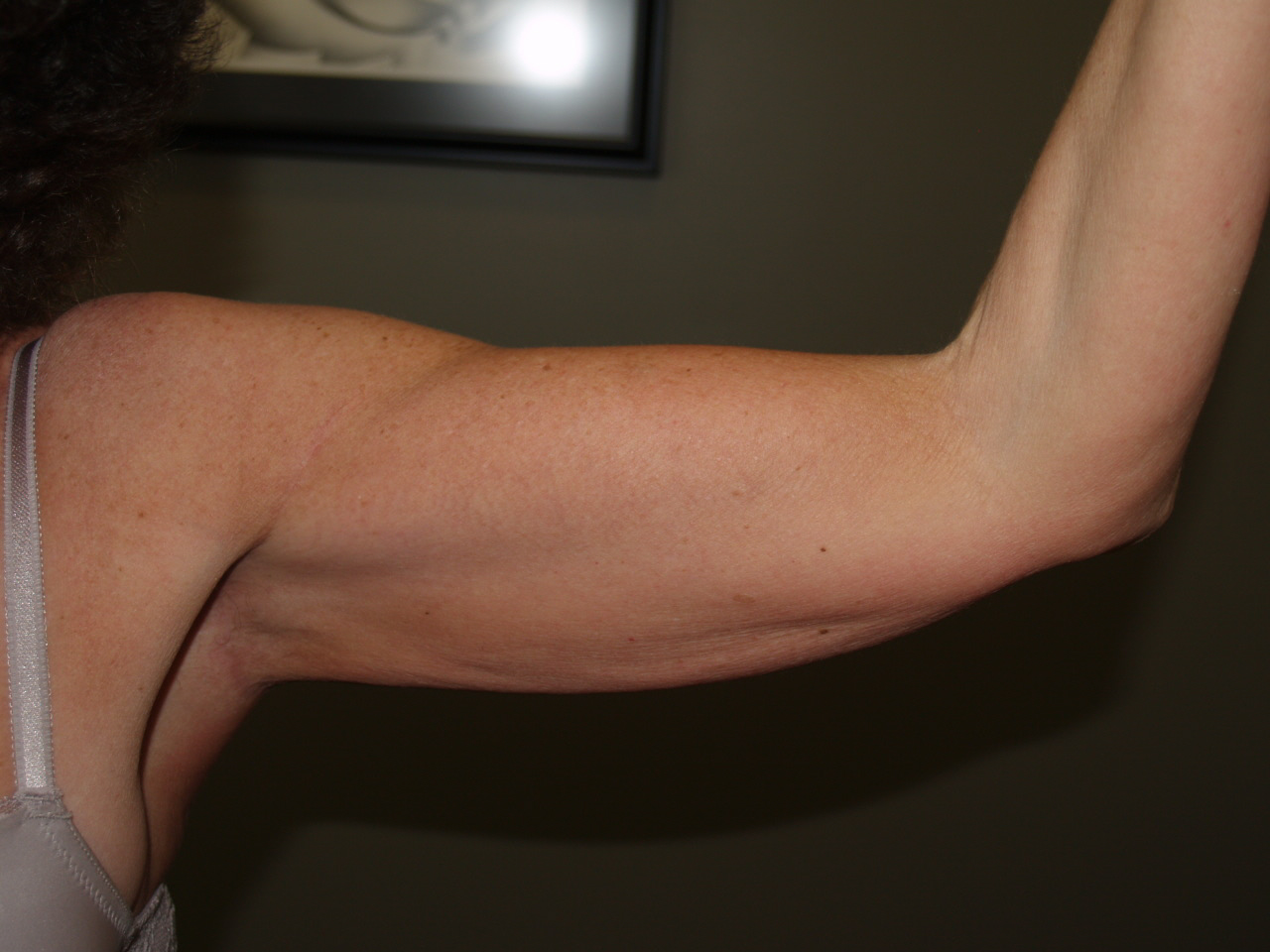 “Invisible” Brachioplasty with incisions and scars confined to the armpit area and not extending down the arms. This can result in less complete correction of arm laxity than the traditional incision but with no scars showing in a short sleeve shirt.