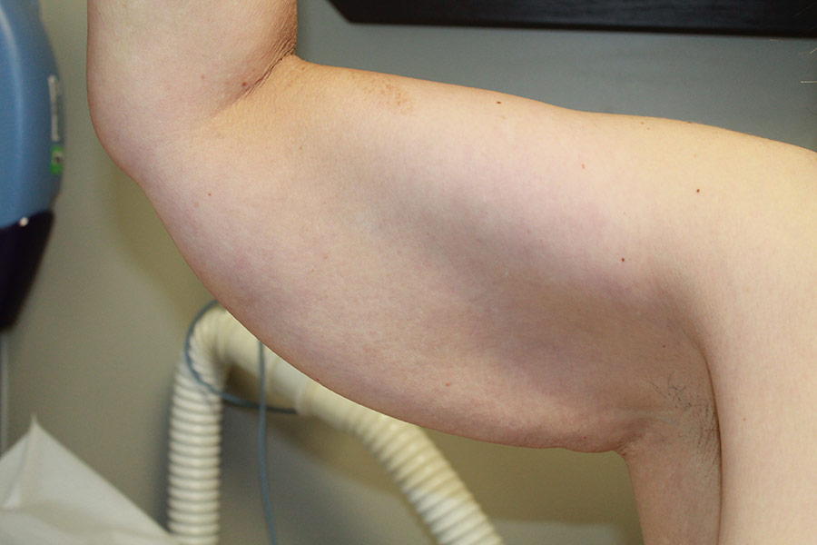 “Invisible” Brachioplasty with incisions and scars confined to the armpit area and not extending down the arms. This can result in less complete correction of arm laxity than the traditional incision but with no scars showing in a short sleeve shirt.