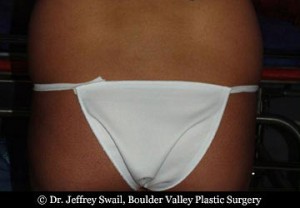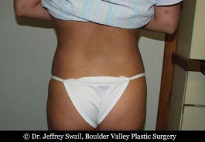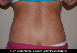 Reference #2083 | This photograph at several weeks after surgery shows tiny liposuction incisions that have not yet faded. | Gender: Female