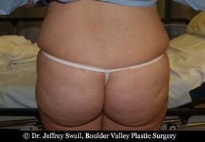 Reference #2082 | This photograph at several weeks after surgery shows tiny liposuction incisions that have not yet faded. | Gender: Female