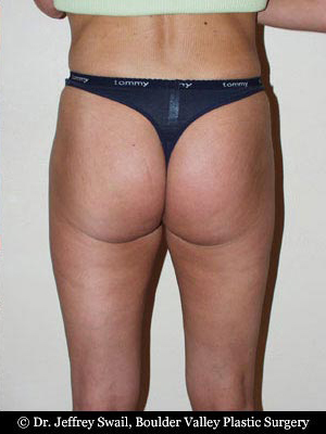 Reference #2092 | This photograph at several weeks after surgery shows tiny liposuction incisions that have not yet faded. Gender: Female