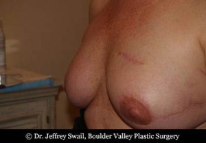 Reference #2030 | This patient had bilateral mastectomies and immediate reconstruction with latissimus dorsi flaps and implants. Nipple reconstruction was done immediately and tattooing for color at a later time. | Gender: Female