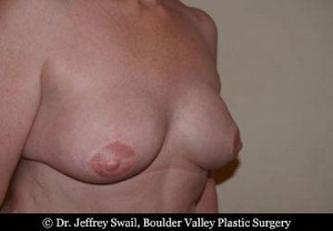 Reference #2032 | This patient had bilateral mastectomies and immediate reconstruction with latssimus dorsi flaps and implants. Nipple reconstruction was done immediately and tattooing for color at a later time. | Gender: Female