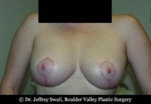 Reference #2038 | This patient had a vertical scar “short scar” reduction with no transverse scar under the breast. The scar at 3 months after surgery is partially faded and full scar maturation can take a year or more. | Gender: Female