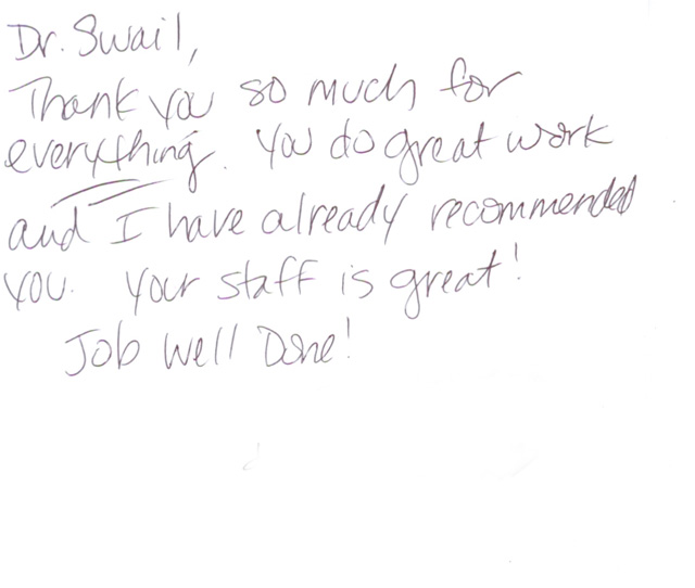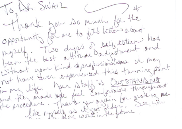 My results far exceeded anything I could have hoped for! They provided exceptional post op care, and were very thorough! It was very clear Dr. Swail is a master at his craft. He was helpful and very professional.